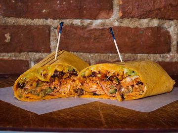 Premium Grilled Chicken, Avocado, Red Onion, Bell Peppers, Jalapenos, Shredded Colby Jack Cheese & our Homemade Black Bean Corn Salsa w/ Homemade Southwest Ranch Sauce