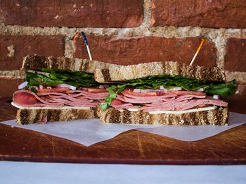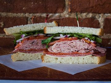 Ham, Beef Pastrami, Provolone, Leaf Lettuce, Tomato w/ our House Dill Mayo
