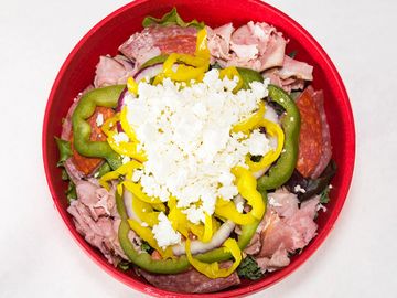Ham, Salami, Pepperoni, Provolone, Red Onion, Tomato, Leaf Lettuce & Italian Dressing w/ Garlic Pepper Seasoning